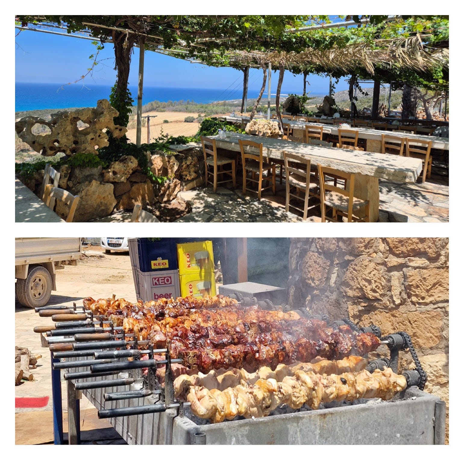 We drove back past Viklari Restaurant also known as the Last Castle. The restaurant is perched on a hilltop overlooking the Avakas Gorge. It’s well known for its delicious souvla limited o a choice of chicken or pork roasted on skewers over large barbecues. In summer a reservation is a must if you want a table for lunch.